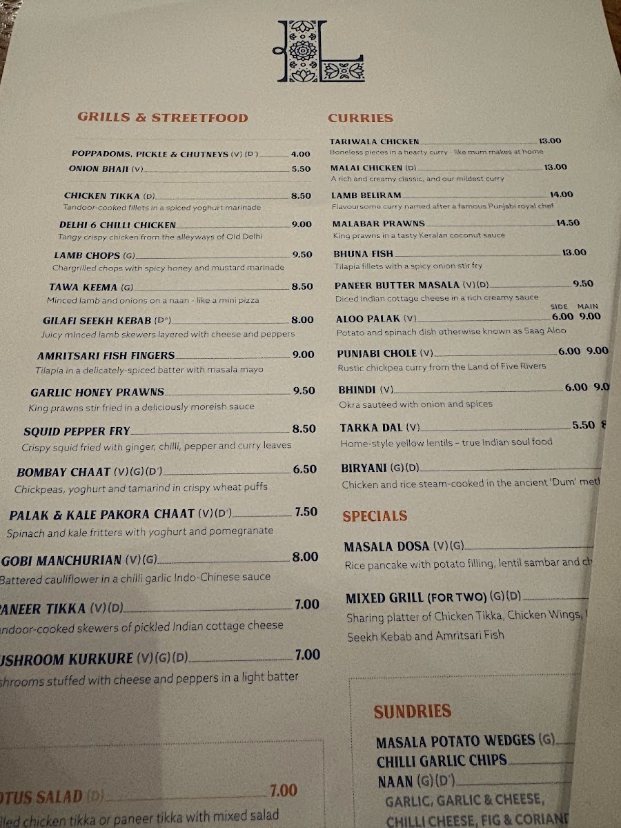 At Lotus Indian Kitchen Menu, you'll find a delightful array of flavorful Indian dishes that bring the authentic taste of India right to Mercia Marina. The menu features a variety of traditional and modern Indian recipes, each prepared with the finest ingredients and aromatic spices. Whether you're in the mood for a rich curry, a flavorful biryani, or something light and fresh, there’s something for every taste. Don’t miss the chance to try some house specialties, where bold flavors and rich textures meet, offering a truly memorable dining experience. Whether you’re here for a casual lunch or a special evening out, the Lotus Indian Kitchen Menu will have you coming back for more.